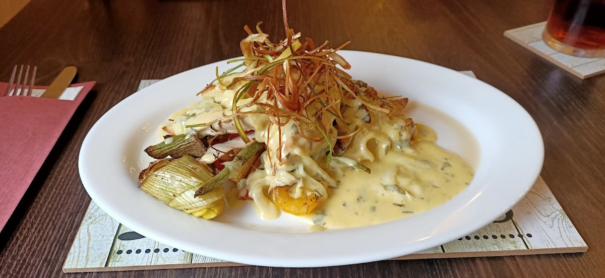 The dining room itself is relaxed and unfussy, with wooden beams and large windows looking out onto open fields. It’s the kind of setting where conversations linger. Families, couples, and solo diners all seem equally at home, which isn’t easy to pull off. The atmosphere reminds me of what hospitality researcher Conrad Lashley often emphasizes: successful dining spaces create a sense of belonging rather than spectacle. You feel that here without anyone needing to spell it out.